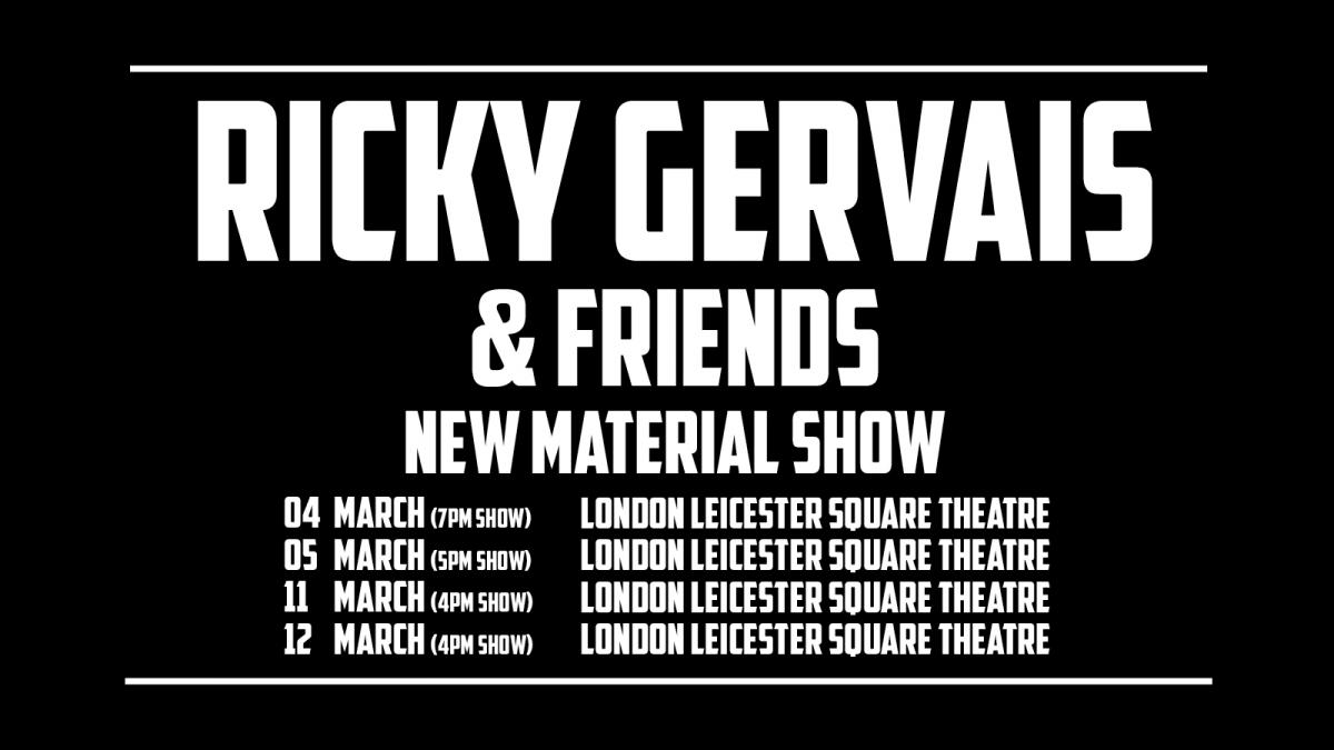 Ricky Gervais & Friends: New Material Show will return to the Leicester Square Theatre on March 4, 5, 11 and 12, having recently performed there on February 12, 13, 19, 20, 26 and 27. Tickets go on general sale at 10am tomorrow (March 1).