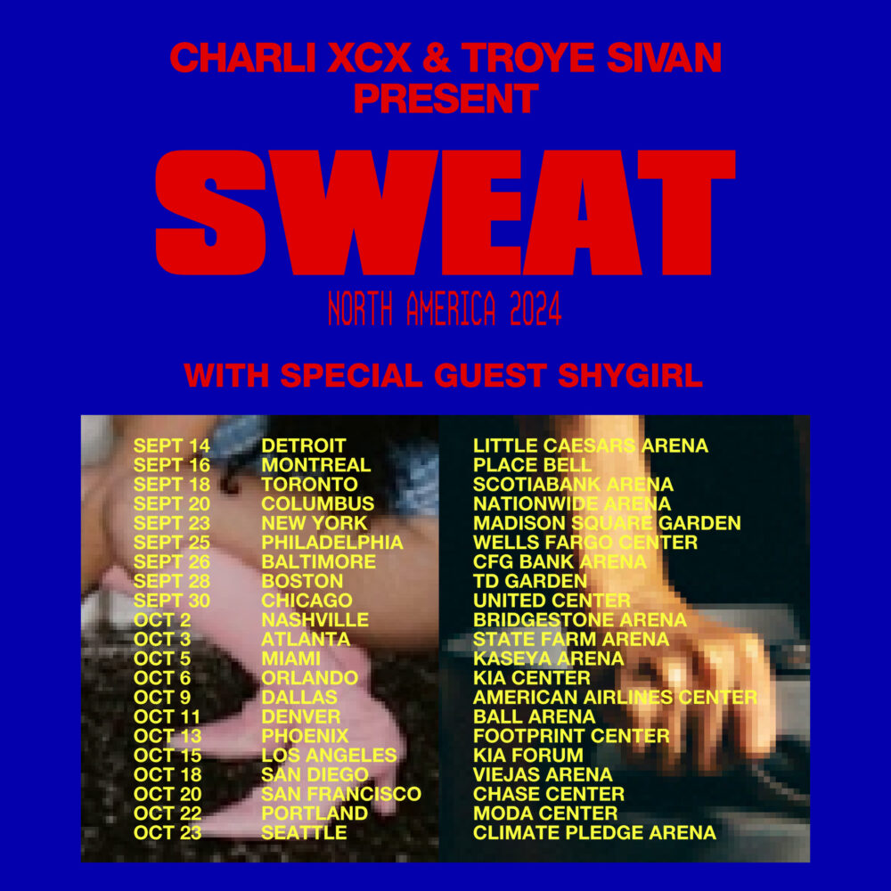 The new 21-city arena trek, billed as Charli XCX and Troye Sivan present Sweat, will take place in September and October, with support coming from special guest Shygirl.