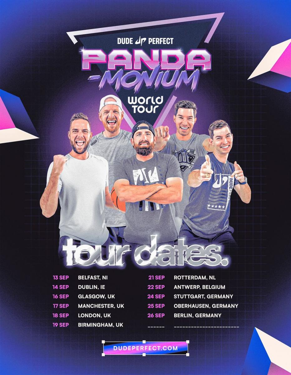 Dude Perfect, one of the most popular American sports channels on YouTube, will bring its Panda-Monium World Tour to Europe later this year.