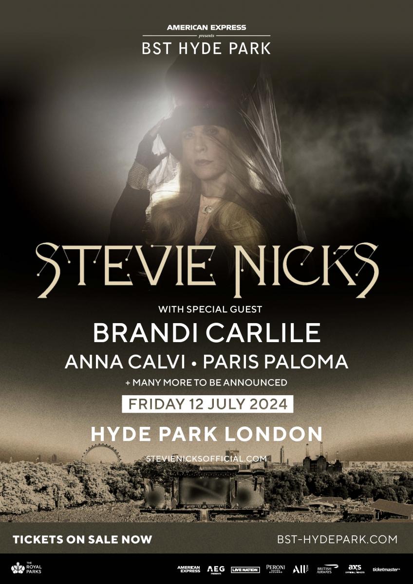 Prior to her London date, Nicks will play arena shows in Dublin, Glasgow and Manchester, and following will perform in Antwerp and Amsterdam.