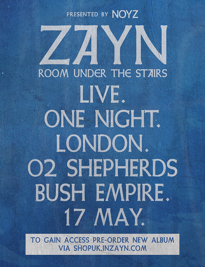 Zayn Announces Album Release Show In London For 'Room Under The Stairs'