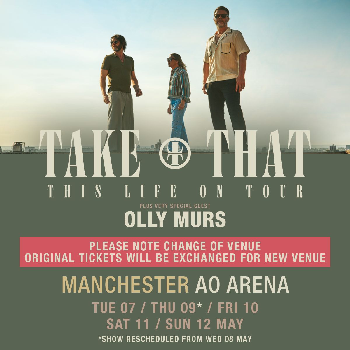 Take That have moved their upcoming Manchester shows.