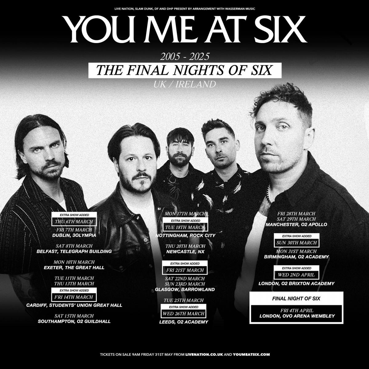 Due to pre-sale demand, You Me At Six have added a number of extra shows to The Final Nights Of Six UK And Ireland Tour.