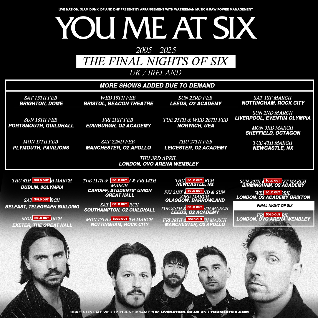 Due to huge demand, You Me At Six have added an impressive 15 extra shows to The Final Nights Of Six UK And Ireland Tour.