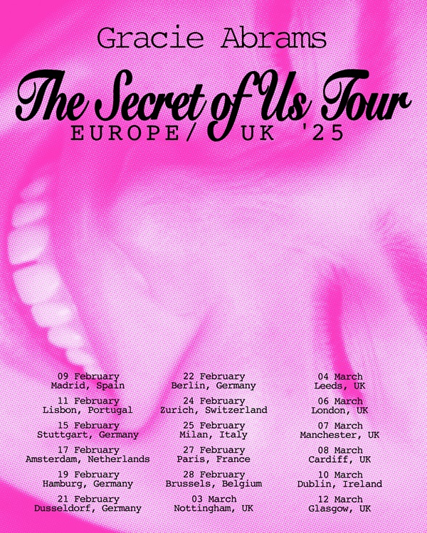 Gracie Abrams will bring The Secret Of Us Tour to the UK and Europe in early 2025.