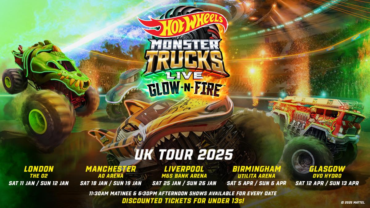 Following the success of 2024's Hot Wheels Monster Trucks Live Glow Party, the new family show will bring jumps and stunts with a fiery twist to arenas in London, Manchester, Liverpool, Birmingham and Glasgow.