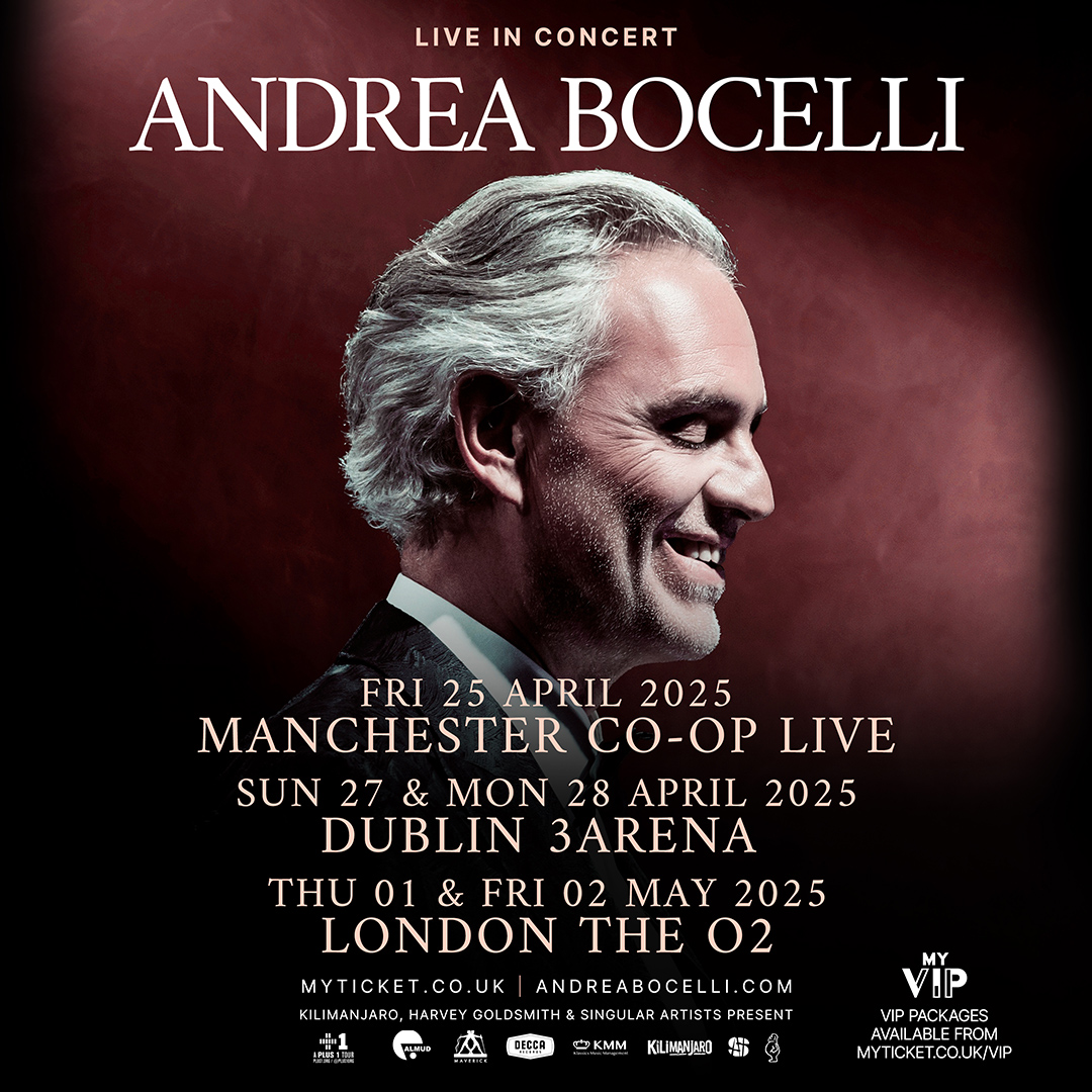 The renowned Italian tenor will perform at Manchester's Co-Op Live Arena on April 25, before playing two nights apiece at Dublin's 3Arena and the O2 Arena in London, where he'll wrap up the run on May 2, 2025. He said: