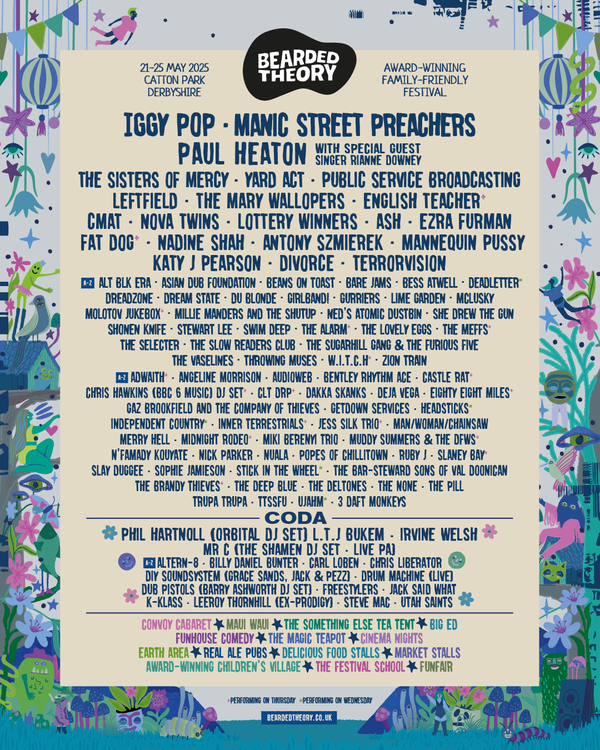Also confirmed for the line-up (to date) are The Sisters Of Mercy, Yard Act, Public Service Broadcasting, Leftfield, The Mary Wallopers, English Teacher, CMAT, Nova Twins, Lottery Winners, Ash, Ezra Furman, Fat Dog, Nadine Shah, Antony Szmierek, Mannequin Pussy, Katy J Pearson, Divorce, Terrorvision, ALT BLK ERA, Asian Dub Foundation, Beans On Toast, Bare Jams, Bess Atwell, Deadletter, Dreadzone, Dream State, Du Blonde, Girlband, Gurriers, Lime Garden, McLusky, Molotov Jukebox, Millie Manders And The ShutUp, Ned’s Atomic Dustbin, She Drew The Gun, Shonen Knife, Stewart Lee, Swim Deep, The Alarm, The Lovely Eggs, The Meffs, The Selecter, The Slow Readers Club, The Sugarhill Gang & The Furious Five, The Vaselines, Throwing Muses, W.I.T.C.H., Zion Train, A-Z, Adwaith, Angeline Morrison, Audioweb, Bentley Rhythm Ace, Castle Rat, Chris Hawkins (BBC 6 Music) DJ Set, CLT DRP, Dakka Skanks, Deja Vega, Eighty Eight Miles, Gaz Brookfield And The Company Of Thieves, Getdown Services, Headsticks, Independent Country, Inner Terrestrials, Jess Silk Trio, Man/Woman/Chainsaw, Merry Hell, Midnight Rodeo, Miki Berenyi Trio, Muddy Summers & The Dfws, N’famady Kouyate, Nick Parker, Nuala, Popes Of Chillitown, Ruby J, Slaney Bay, Slay Duggee, Sophie Jamieson, Stick In The Wheel, The Bar-Steward Sons Of Val Doonican, The Brandy Thieves, The Deep Blue, The Deltones, The None, The Pill, Trupa Trupa, Ttssfu, Ujahm, 3 Daft Monkeys, Phil Hartnoll (Orbital DJ Set), L.T.J Bukem, Irvine Welsh, Mr C (The Shamen DJ Set – Live PA), Altern-8, Billy Daniel Bunter, Carl Loben, Chris Liberator, Diy Soundsystem (Grace Sands, Jack & Pezz), Drum Machine (Live), Dub Pistols (Barry Ashworth DJ Set), Freestylers, Jack Said What, K-Klass, Leeroy Thornhill (Ex-Prodigy), Steve Mac, and Utah Saints.