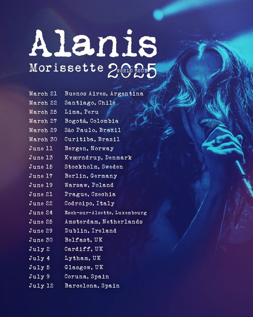 Alanis Morissette has scheduled UK and European shows for summer 2025.