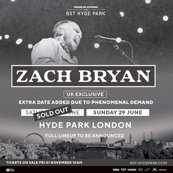 Sun June 29 2025 - LONDON Hyde Park [NEW - Zach Bryan]
