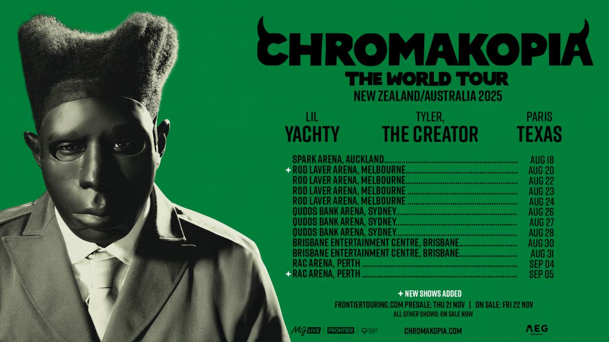 Due to demand, Tyler, The Creator has added extra Australian shows to his Chromakopia: The World Tour.