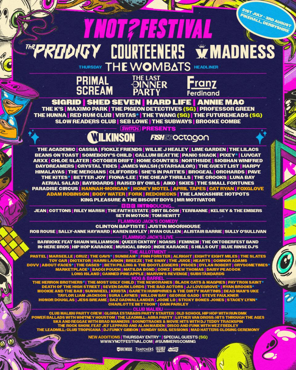 They join an already stacked line-up that includes the previously announced headliners The Prodigy, Courteeners and Madness, who top the bill on Friday, Saturday and Sunday, respectively, with The Wombats set to headline Thursday's bill for those with early-entry tickets.