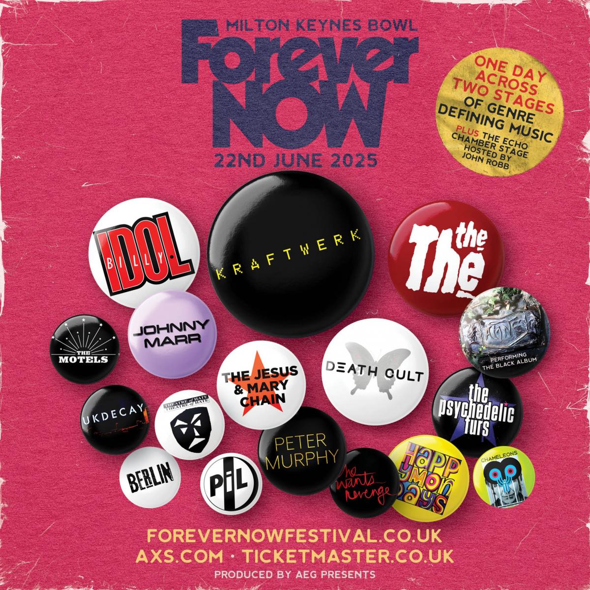 Who? The first acts to be confirmed for the line-up are Kraftwerk, The The, Billy Idol, Death Cult, Johnny Marr, Peter Murphy, the Psychedelic Furs, The Jesus and Mary Chain, Happy Mondays, The Damned, Public Image Ltd, Berlin, Theatre of Hate, She Wants Revenge, Chameleons, The Motels and UK Decay