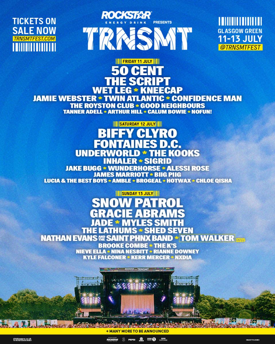TRNSMT will return to Glasgow Green in July, with 50 Cent and The Script set to co-headline the main stage on Friday, Biffy Clyro and Fontaines D.C. the Saturday, and Snow Patrol and Gracie Abrams the Sunday.