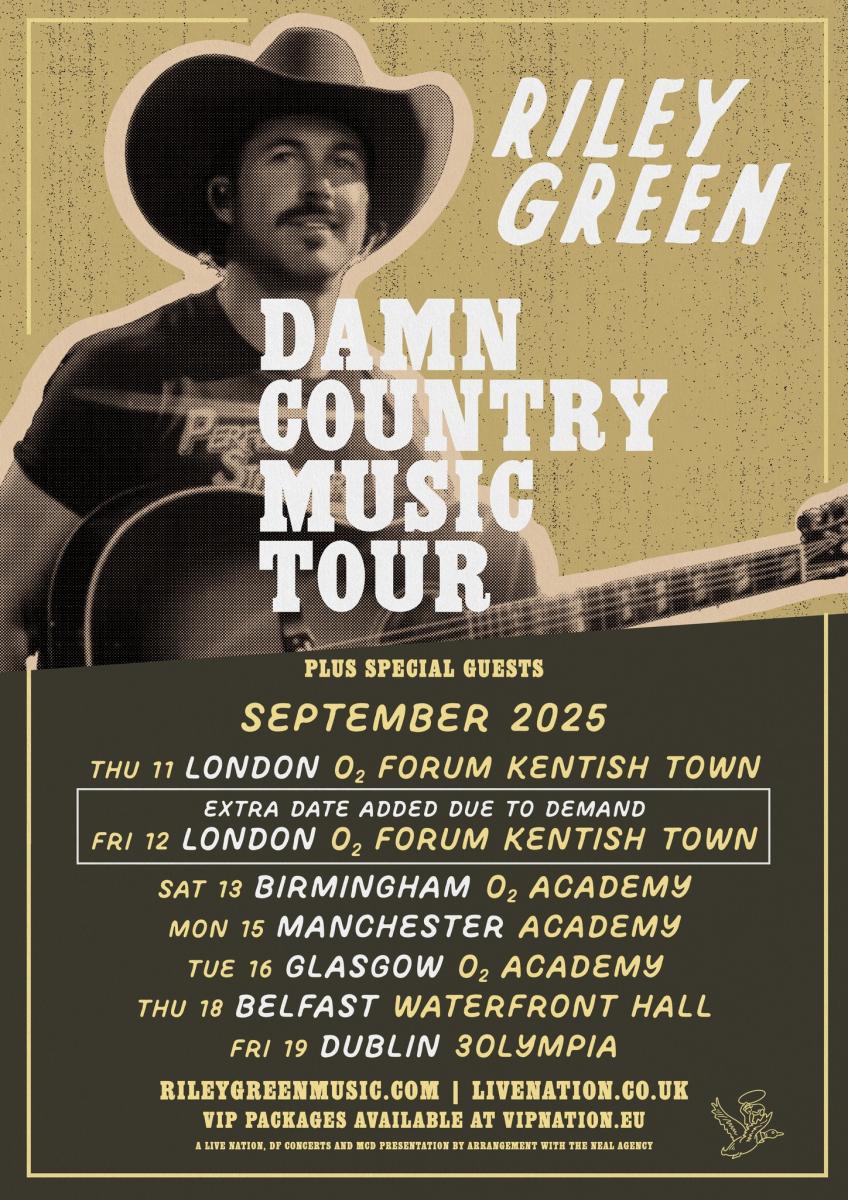Due to demand, Riley Green has added a second London date to the UK and Ireland leg of his Damn Country Music Tour.