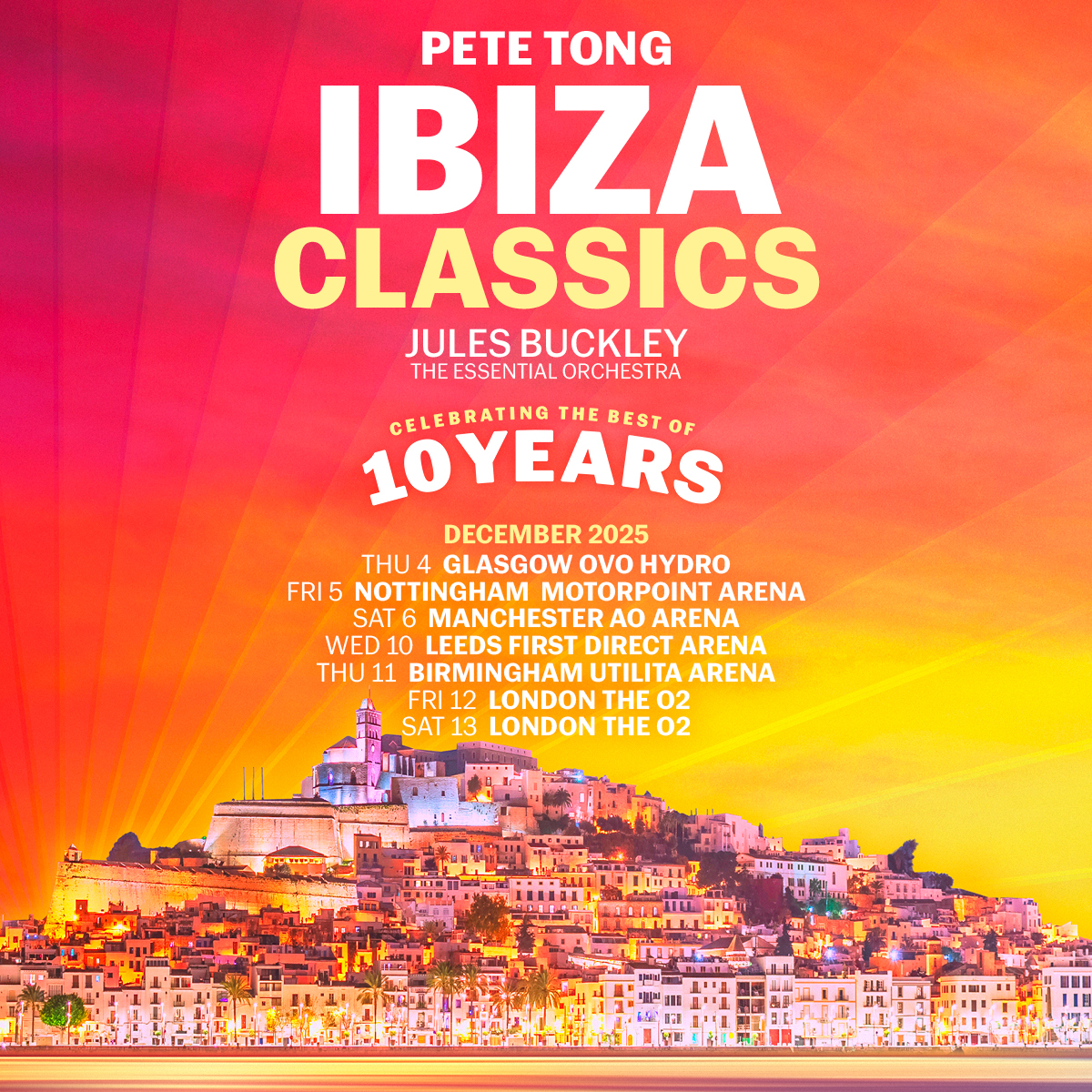 The DJ debuted the Ibiza Classics live show in 2015, so the new dates will celebrate its 10th anniversary. Tickets go on general sale at 10am on Monday (December 16).