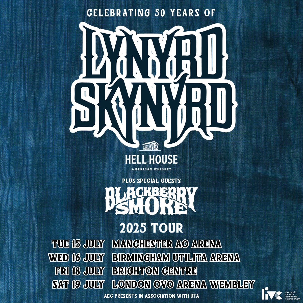 The American rockers will mark 50 years since the arrival of their debut album, ’Pronounced ’Lĕh-’nérd ’Skin-’nérd’, with arena shows in Manchester, Birmingham, Brighton and London, where they’ll headline the OVO Arena Wembley, between July 15 and 19.