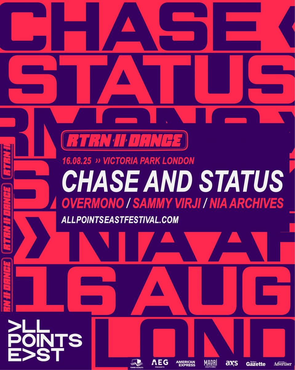 The London dance outfit will top the bill as part of their specially curated RTRN II DANCE takeover at Victoria Park in London on August 16. Support will come from special guests personally chosen by the pair: Overmono, Sammy Virji, and Nia Archives, plus more that are still to be announced. Tickets go on general sale at 10am on February 13. Chase and Status said: