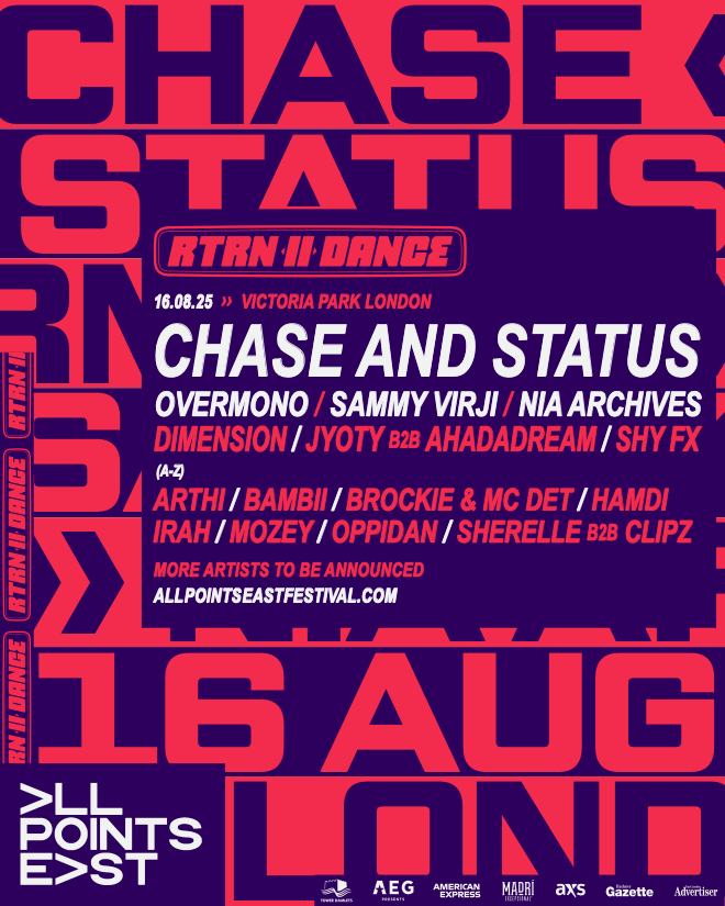 UPDATE 05/02: Chase and Status have announced new additions to the line-up: Dimension, Jyoty B2B Ahadadream, Shy FX, Arthi, Bambii, Brockie & MC Det, Hamdi, IRAH, Mozey, Oppidan and SHERELLE B2B CLIPZ.