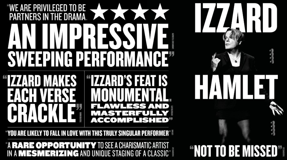 Izzard has previously toured Hamlet, having performed it at an extensive, four month-long residency in New York, before heading to Chicago, London and Bexhill-on-Sea.