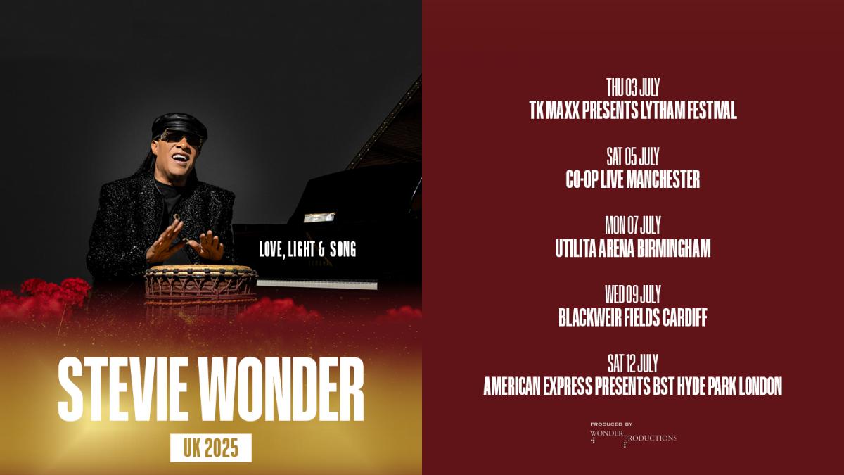 Stevie Wonder Upcoming Tour Dates are as follows Thu July 03 2025 - LANCASHIRE Lytham Green