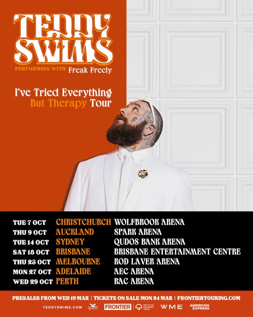 Teddy Swims has added new Australian and New Zealand shows to his I've Tried Everything But Therapy Tour.