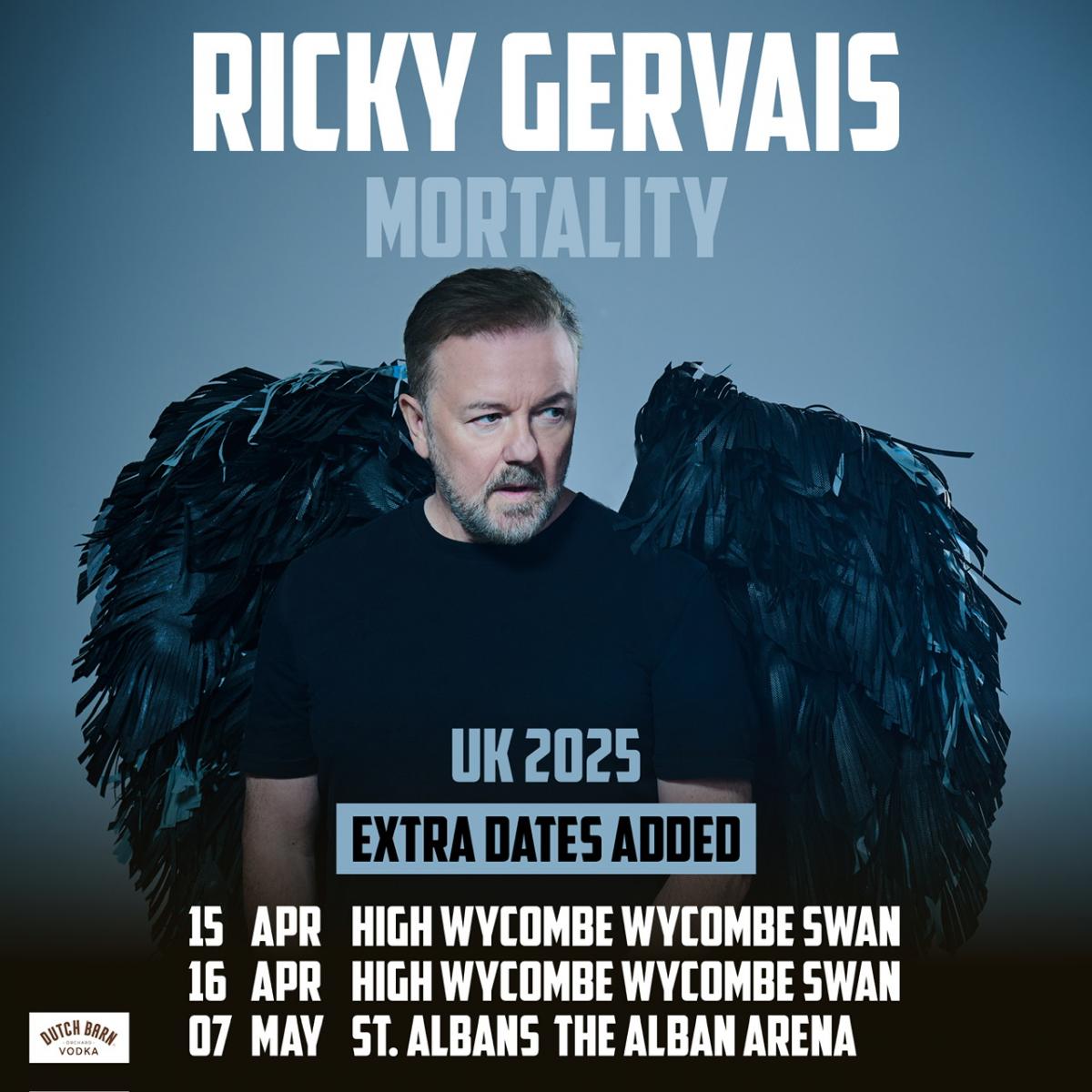 Ricky Gervais has added three new UK shows to his Mortality Tour.