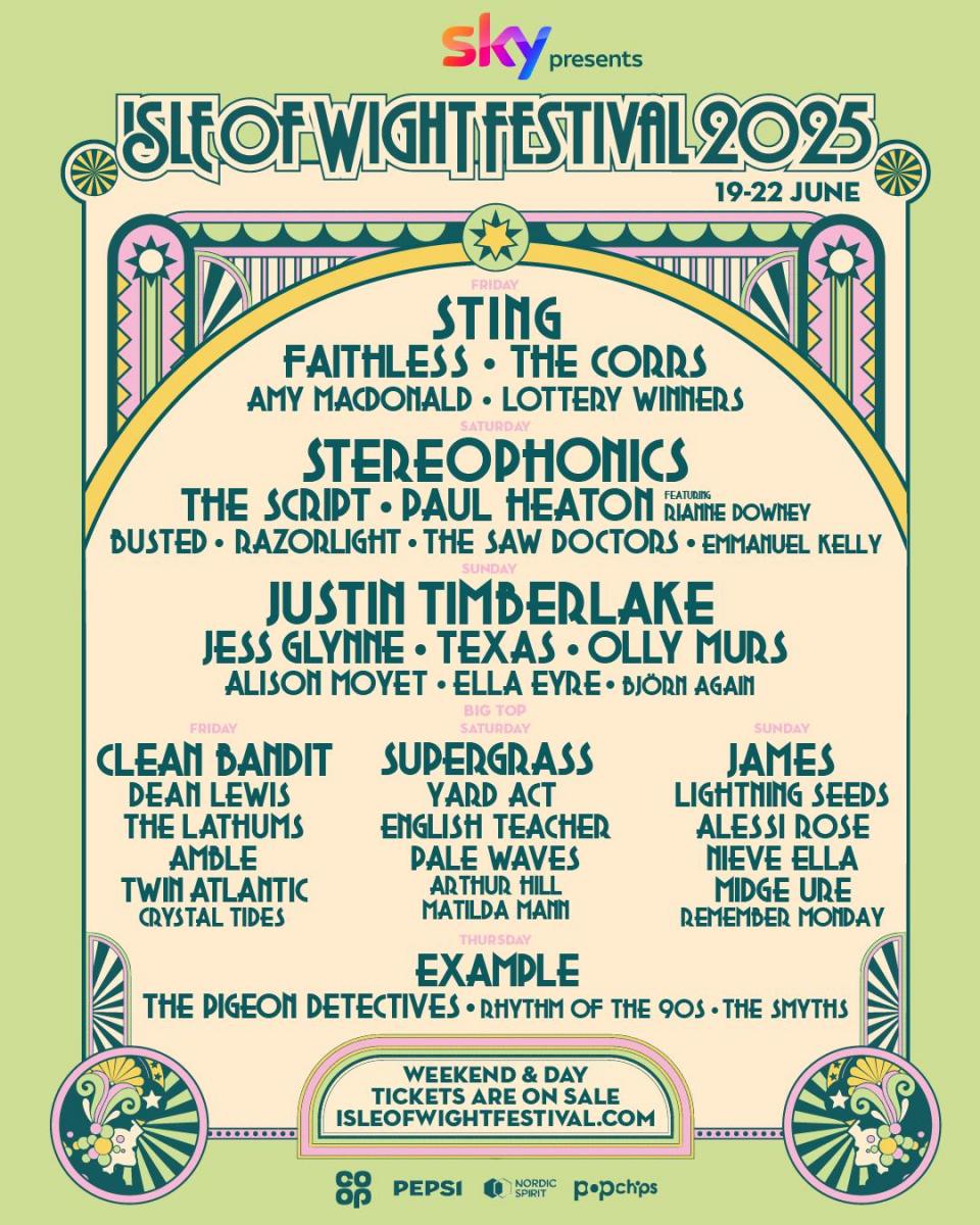 This summer, Sky presents The Isle Of Wight Festival will return to Seaclose Park between June 19 and 22, welcoming headliners Sting, Stereophonics and Justin Timberlake, as well as Faithless, The Corrs, The Script, Jess Glynne, Supergrass, Busted, Texas, Olly Murs, Razorlight and more.