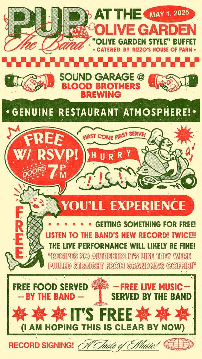 The follow-up to 2022's 'THE UNRAVELING OF PUPTHEBAND' will arrive this Friday (May 2) via Little Dipper/Rise Records. Ahead of the release, the Toronto four-piece will bring Olive Garden to Canada on Thursday (May 1) for an album launch party featuring a short live set from the band, Olive Garden-inspired music, decor, and food from Matty Matheson’s Rizzo’s House of Parm.