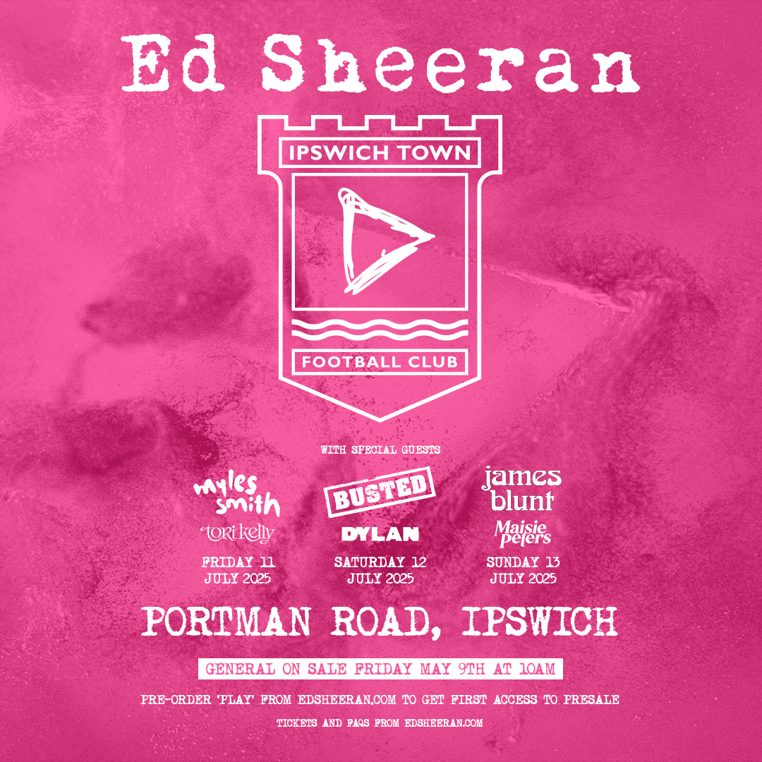 Ed Sheeran has announced three summer stadium shows in Ipswich. Ed Sheeran tickets go on general sale at 10am today.