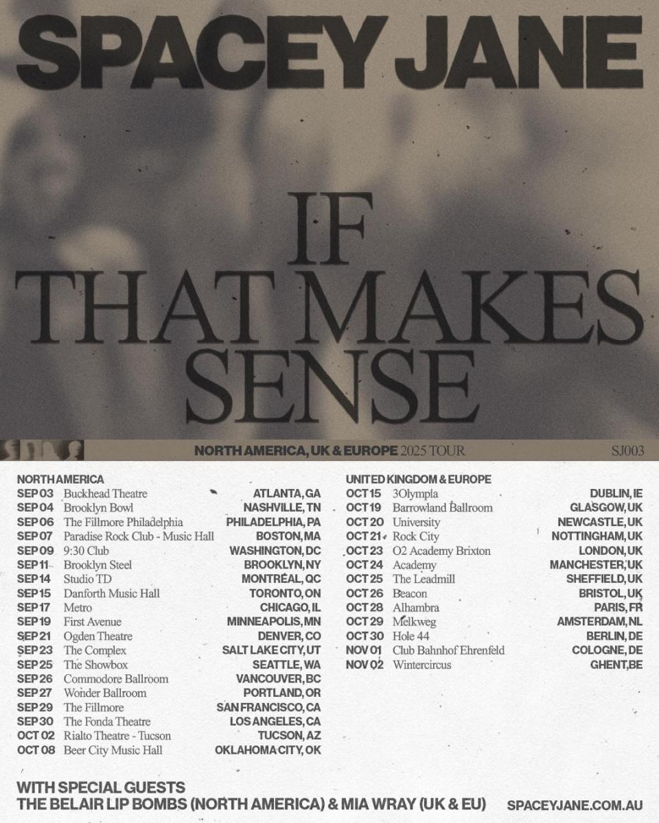 The tour shares its name with Spacey Jane's third studio album, 'If That Makes Sense', which is due out tomorrow (May 9). Check out our new interview with the band here.