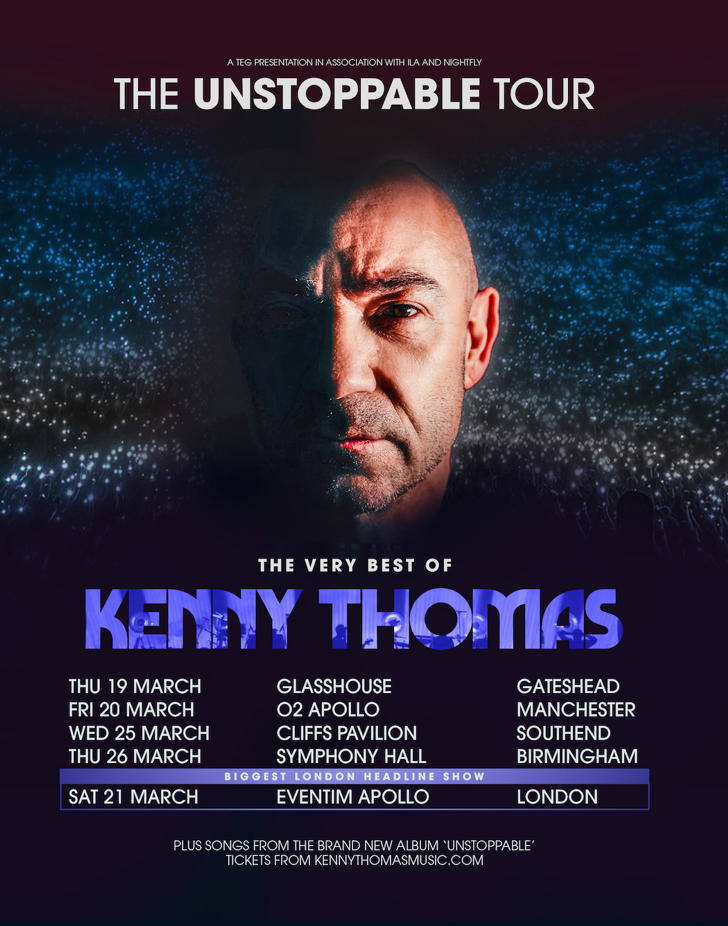 Thomas will support the LP with The Unstoppable Tour: The Very Best of Kenny Thomas in 2026, which kicks off with a performance in Gateshead on March 19 and wraps up at Birmingham Symphony Hall on March 26. The run also includes his biggest London headline show to date at the Eventim Apollo on March 21. Tickets for all dates go on general sale at 10am on Friday (May 30).