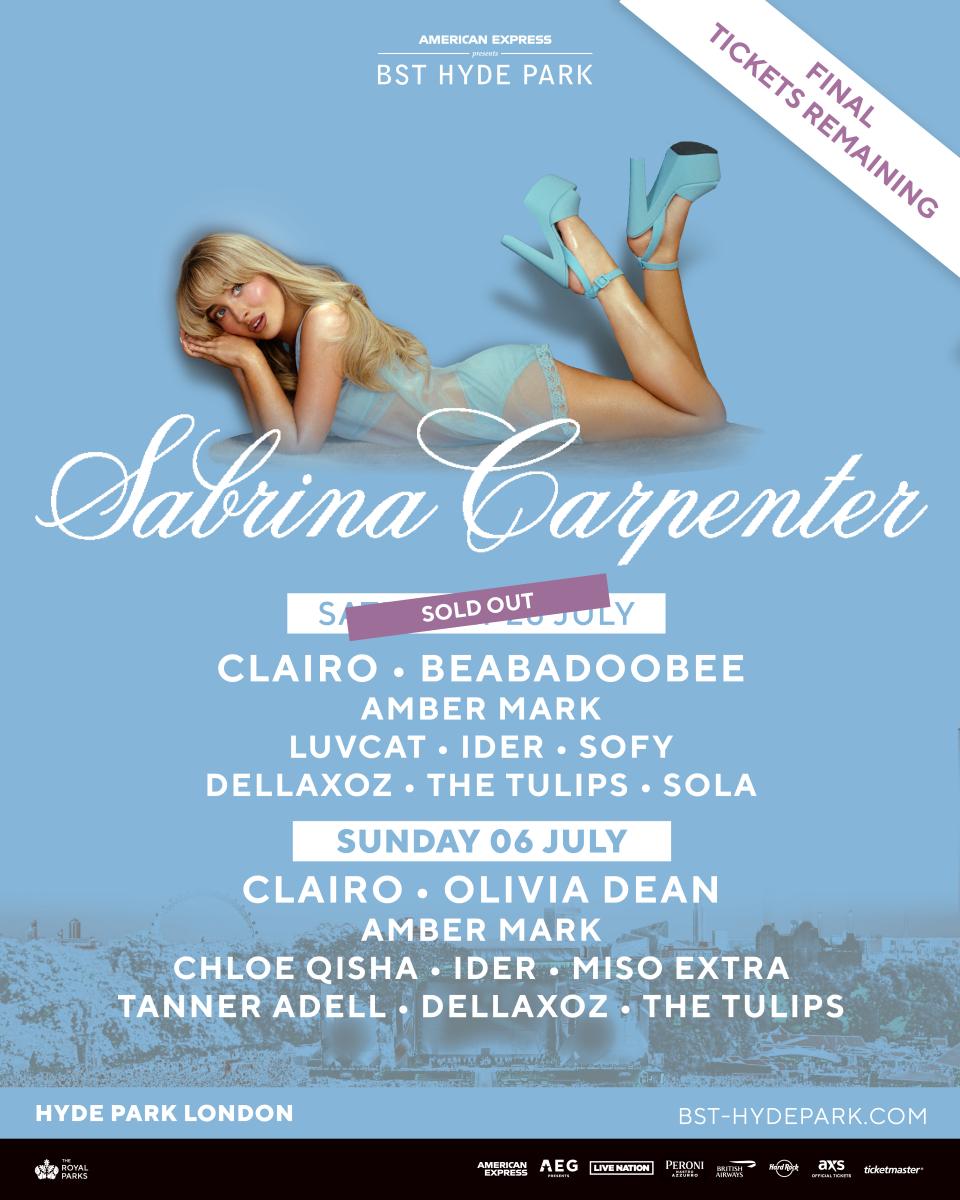 The full supporting line-up has been announced for Sabrina Carpenter's BST Hyde Park shows this summer.