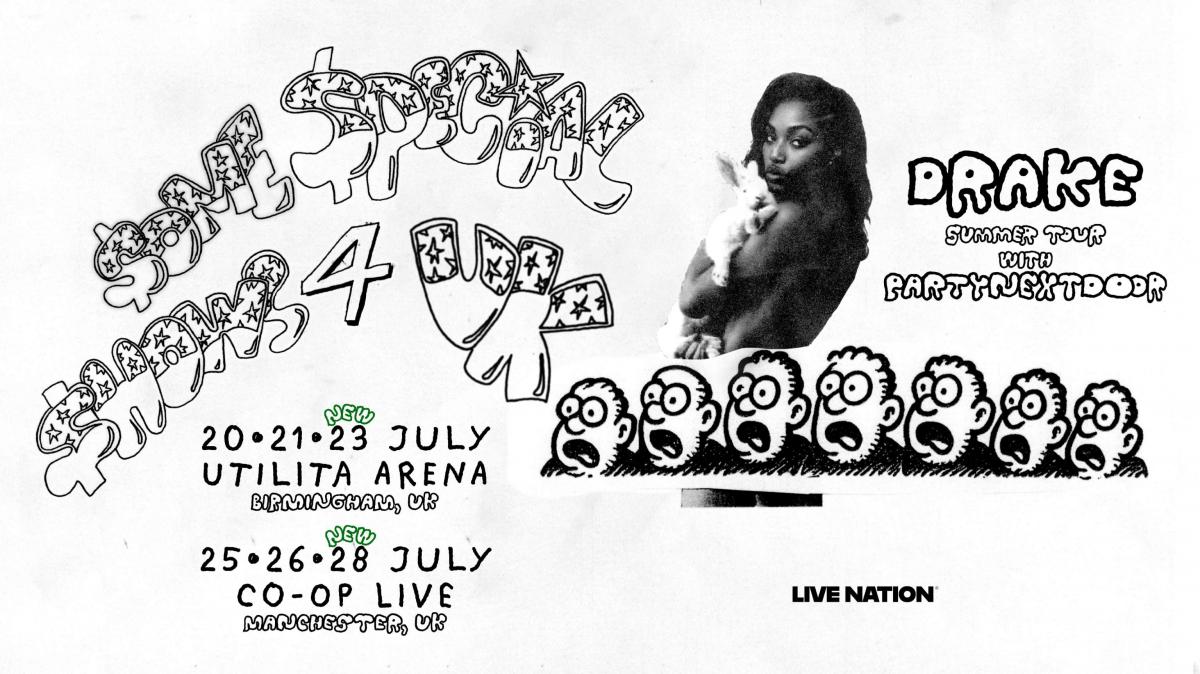 The tour takes its name from Drake and PARTYNEXTDOOR's collaborative album, '$ome $exy $ongs 4 U', which arrived back on Valentine's Day. It also marks the former's first return to Europe and the UK in six years, following his Assassination Vacation Tour in 2019.