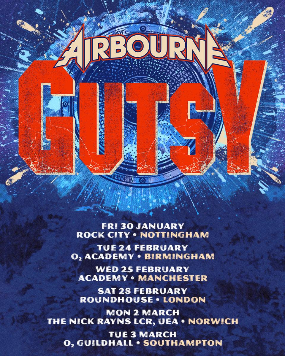 Airbourne will bring the Gutsy Tour to the UK and Europe early next year.