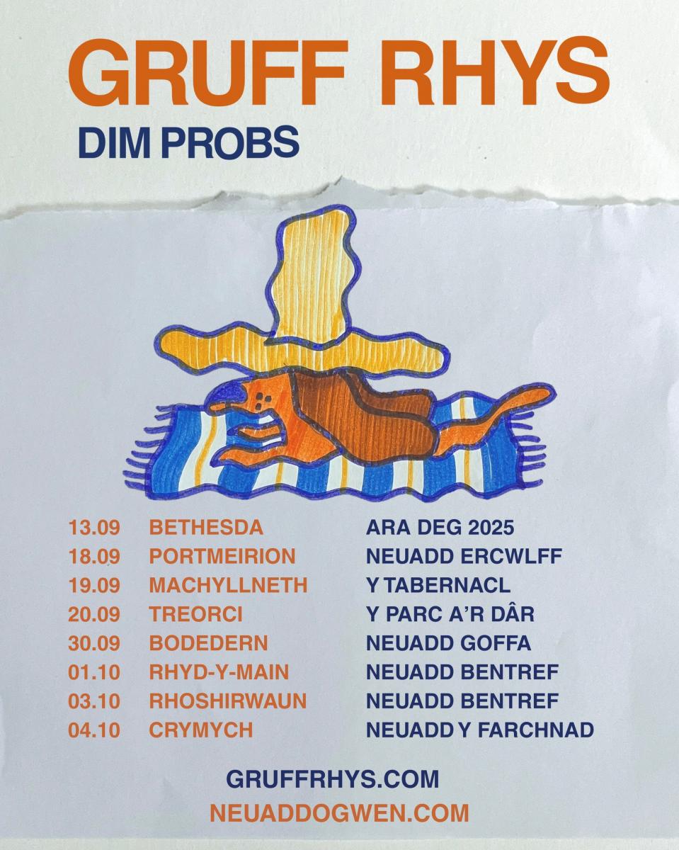 'Dim Probs', the Welsh-language follow-up to 2024's 'Sadness Sets Me Free', will be released on September 12 via Mogwai's Rock Action label. Introducing the record on social media, he said:
