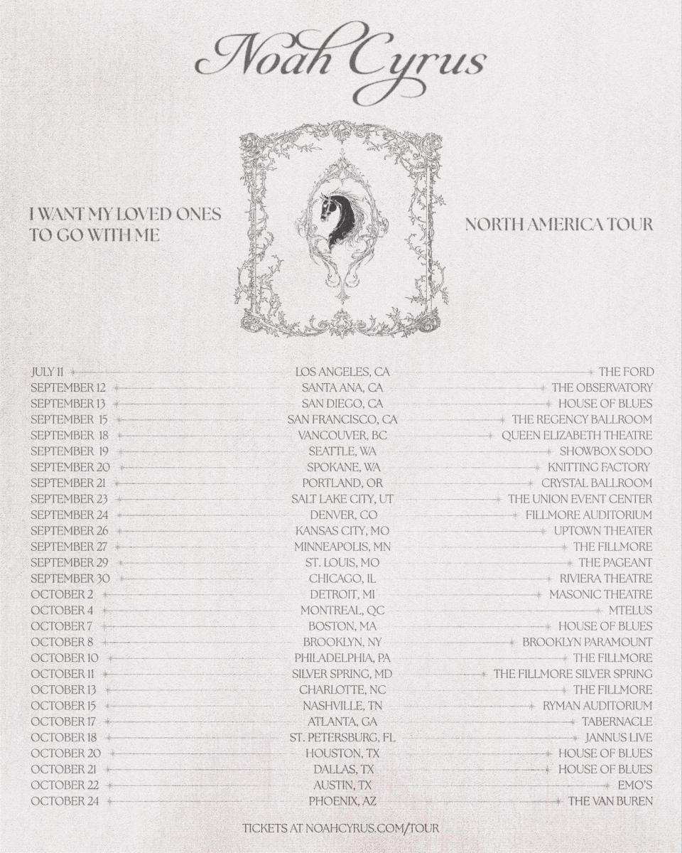 Cyrus will support the album with a North American tour in September and October, following a one-off Los Angeles show on July 11 . Tickets go on general sale at 10am local time on Friday (June 20).