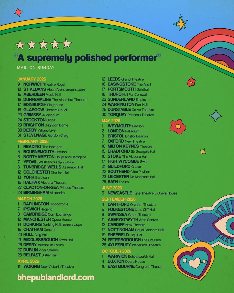 The Pub Landlord, aka comedian Alastair Murray, has announced two legs of his new show for 2026. The first will begin on January 9 in Norwich, with dates running through to June 5, when it will wrap up in Newcastle.