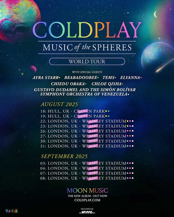The support acts have been announced for Coldplay's upcoming UK stadium shows as part of their Music Of The Spheres World Tour.