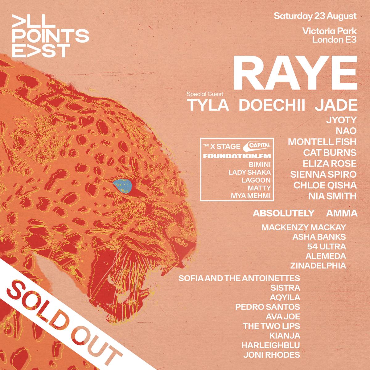 More acts have been announced for RAYE's sold-out All Points East show in London later this month.