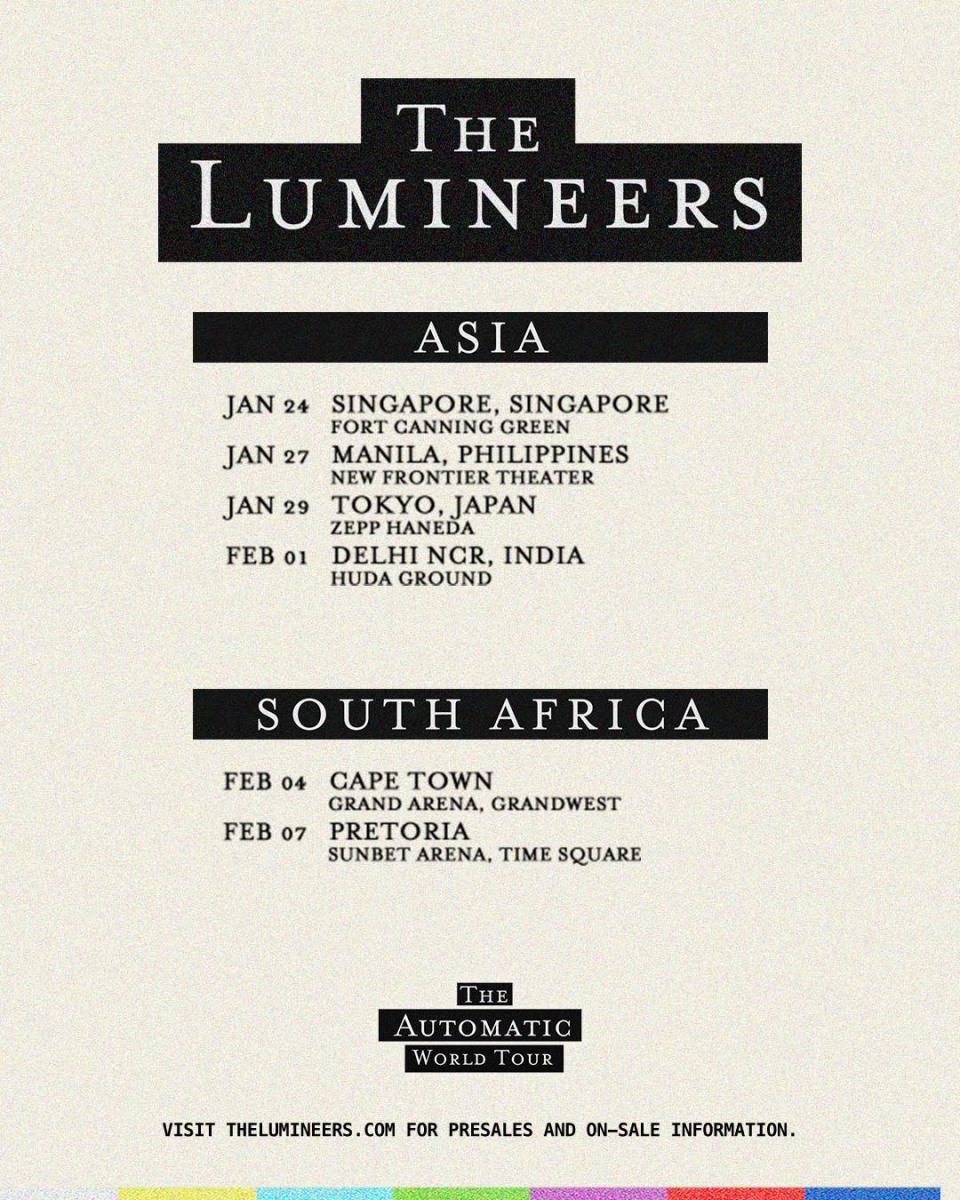 The Lumineers will take The Automatic World Tour Down Under at the start of 2026.