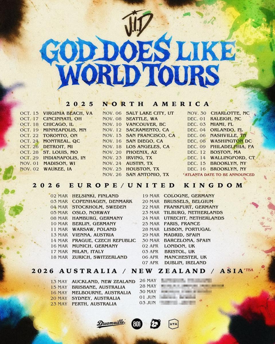The Australia and New Zealand run is lined up between May 13 and 23, calling in Auckland, Brisbane, Melbourne, Sydney and Perth. The Asia leg is still to be revealed, though J.I.D has confirmed via the tour poster that it will run from May 26 to June 3.