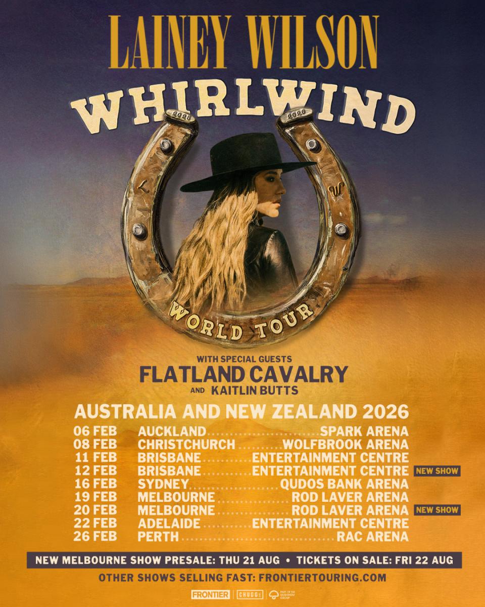 Lainey Wilson has added extra dates to the Australian leg of her Whirlwind World Tour early next year.