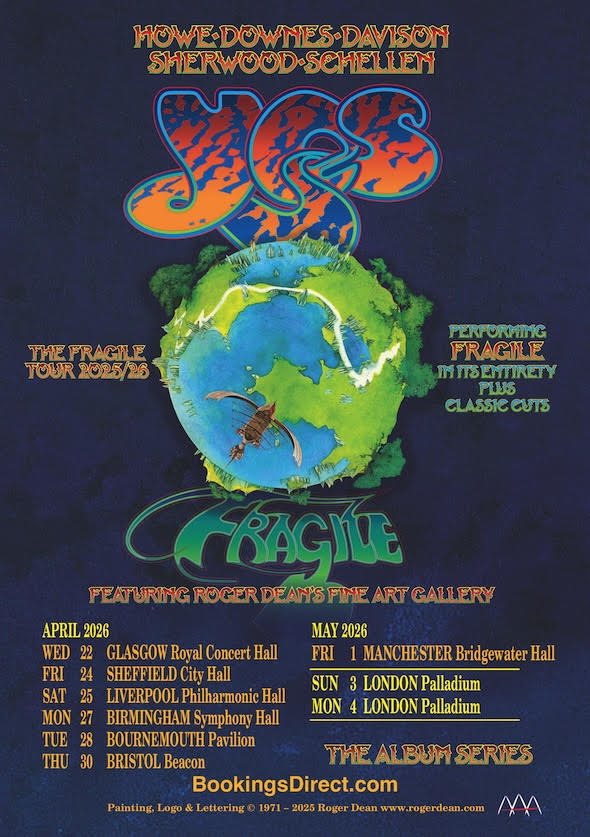 Additionally, at every show, fans will be able to check out a gallery of artwork by the legendary Roger Dean, whose paintings have famously appeared on several Yes album covers over the years, beginning with 'Fragile'.