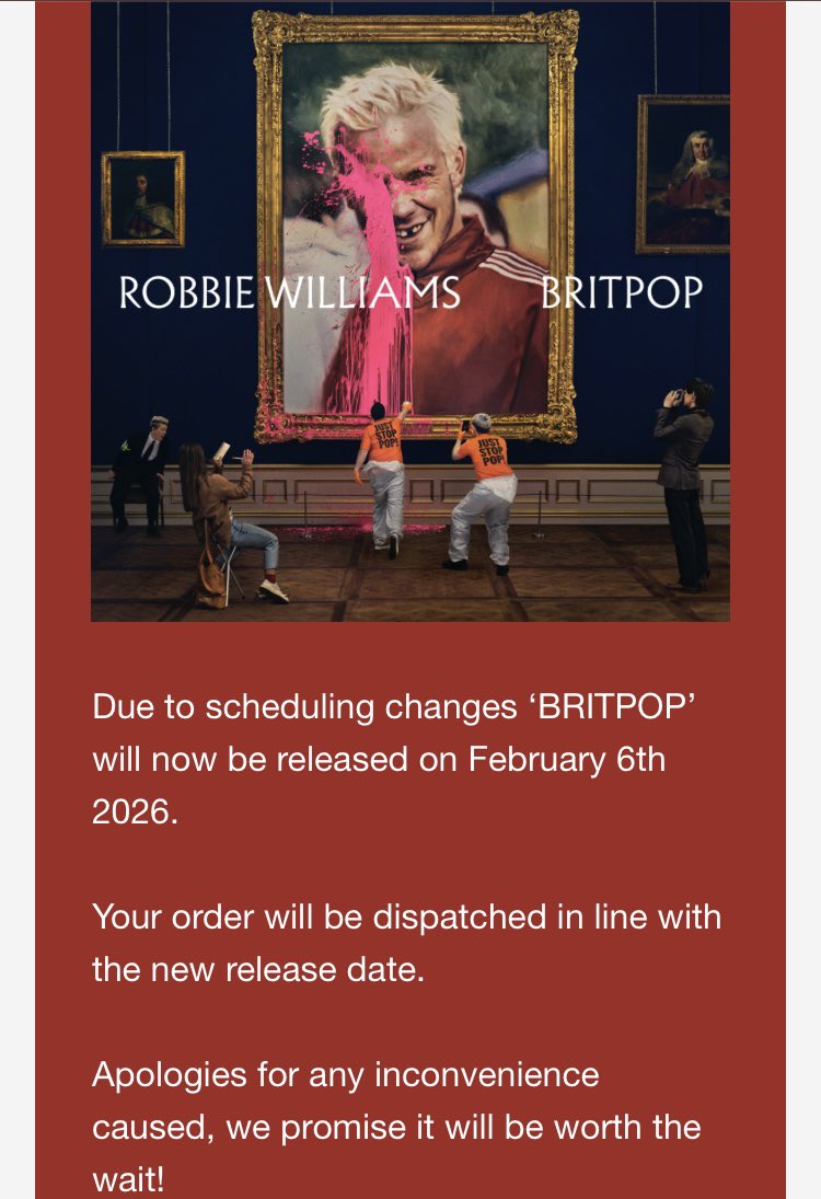 "Due to scheduling changes, BRITPOP will now be released on February 6, 2026. Your order will ship closer to that date. Sorry for the wait — we promise it’ll be worth it!"