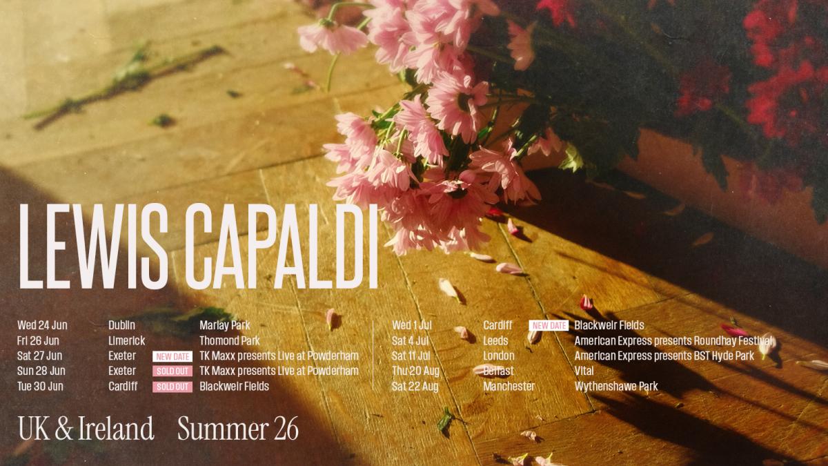 Lewis Capaldi has scheduled a series of outdoor shows across the UK and Ireland for summer 2026. Lewis Capaldi tickets go on general sale at 9am local time today.