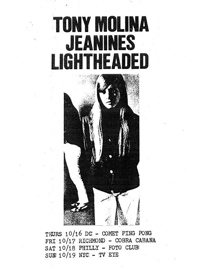 Molina will play East Coast shows in Washington D.C., Richmond, Philadelphia and New York City between October 16 and 19 with Jeanines and Lightheaded. Head here for details. Tickets are on sale now.