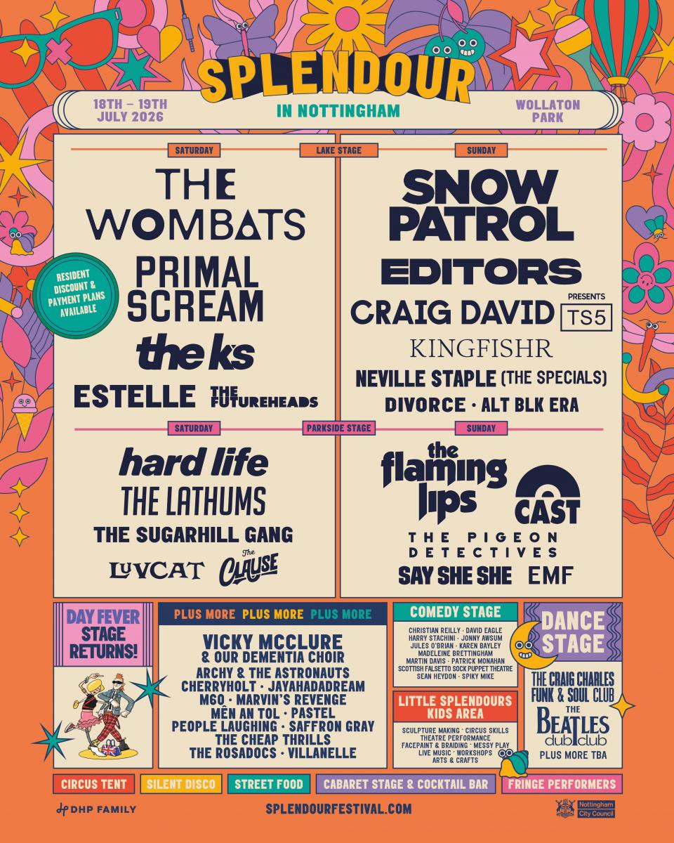 The event will return to the grounds of Wollaton Park in Nottingham, with Liverpool indie trio The Wombats headlining the Saturday (July 18), and BRIT and Grammy-nominated band Snow Patrol topping the bill on Sunday (July 19).