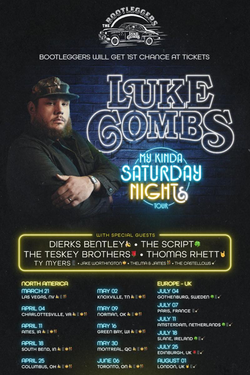 Luke Combs has announced the My Kinda Saturday Night Tour.