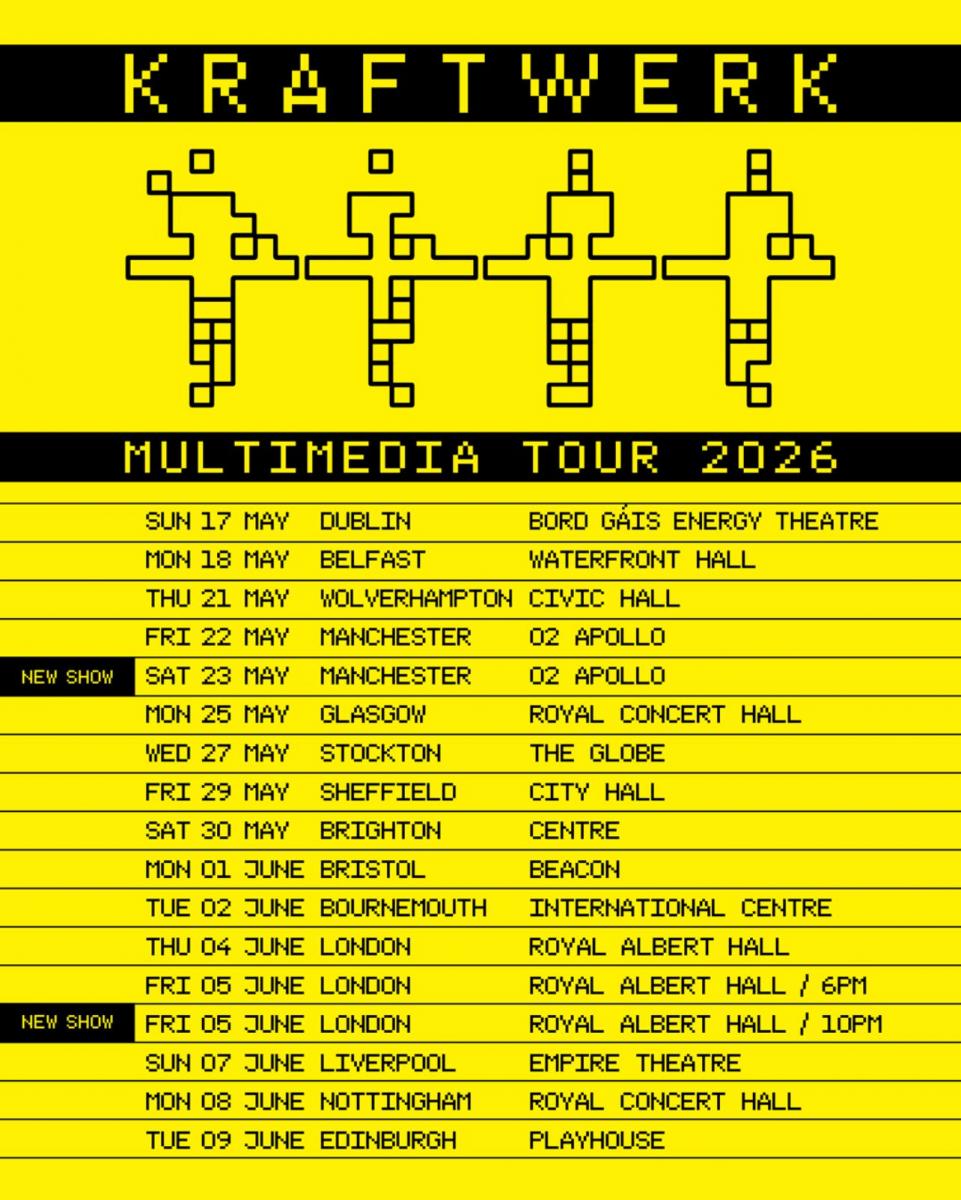 Due to demand, Kraftwerk have added two new shows to the summer UK and Ireland leg of their Multimedia Tour.